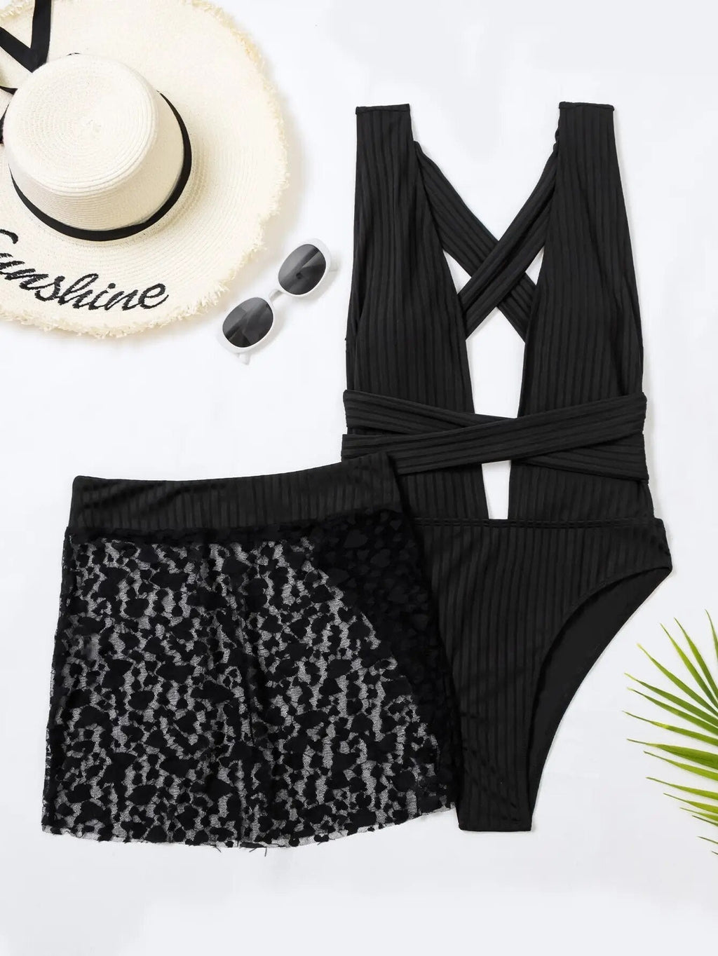Maiô Margarida Conjunto Texturizado Decote V Com Saia Pareô